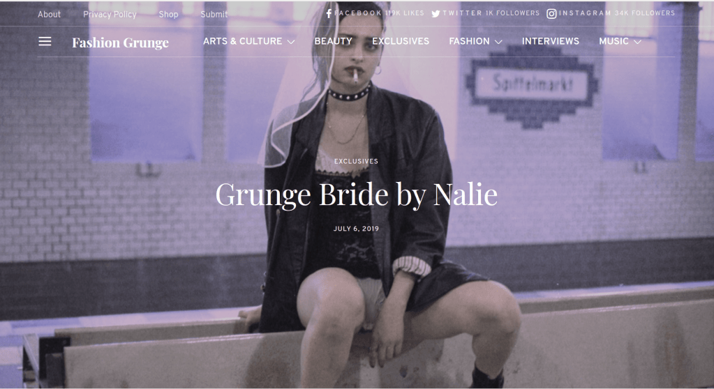What I really enjoy about this blog is the exclusive pictorials within, like Grunge Bride by photographer Nalie @girlsofunderground. This exclusive story is told through a grainy polaroid camera and a cigarette stained lense. The bride pictured thoughout Berlin’s underground perfectly encapsulates that cross section of grunge music, culture, and fashion. The style throughout the exclusives at Fashion Grunge have an overtone of edgy, dirty and dark grunge subculture.